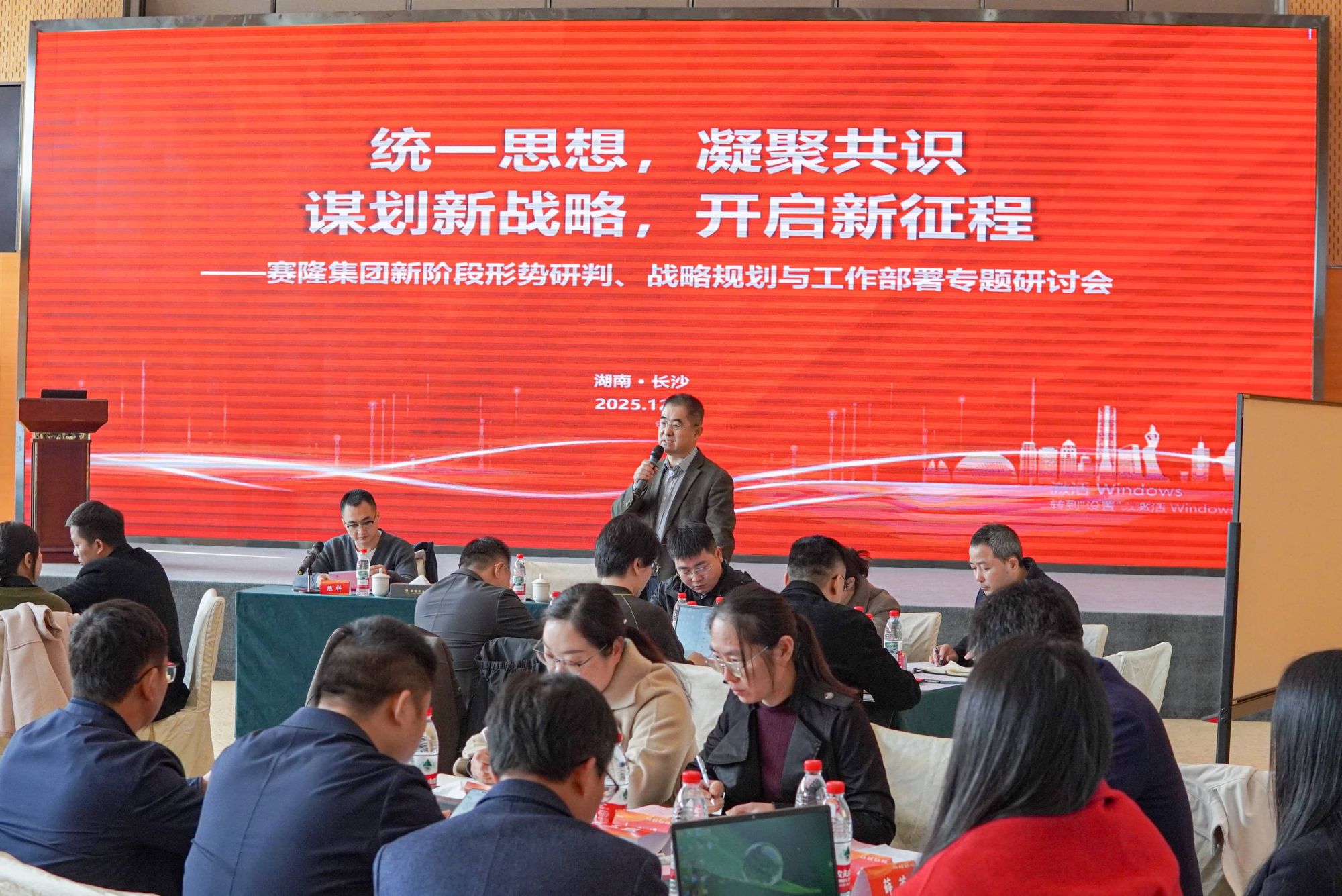 2025年12月8日下午,賽隆集團新階段形勢研判、戰略規劃與工作部署專題研討會于星沙基地四樓多功能廳順利召開。